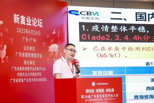 广州市华南农大生物药品有限公司研究院副院长叶贺佳对当前H5、H7亚型高致病性禽流感病毒的流行趋势及毒株情况进行了分析,他表示,2020-2025年H5亚型高致病性禽流感病毒席卷全球,其中H5N1亚型成为主要流行血清型。现有疫苗毒株(rGD59/H5-Re13株)与流行性毒株存在较大的抗原差异,HI抗体效价差异在8-64倍,必须对疫苗毒株进行更新及储备。2025年至今H7N9亚型分离毒株主要来源于蛋鸡(占比87%),Group y.2.3毒株的数量远高于Group y.2.4毒株(82%vs18%)。然而商品疫苗对于Group y.2.3的攻毒保护率仅达40%-80%。